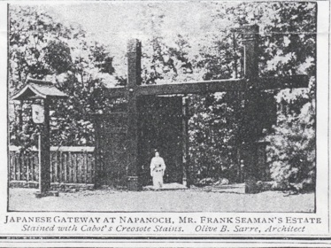 Olive Brown Sarre is generally acknowledged to be the designer of Yama-no-uchi. As described in a 1910 American Homes and Gardens article, this stunning Japanese-inspired complex “was entirely the work of an American woman.” Further testifying to Olive’s role is a 1915, advertisement in The Craftsman magazine. It depicts a portion of Yama-no-uchi with a caption beneath it reading “Olive B. Sarre, Architect.”