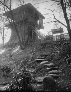 Clay Lancaster, author of The Japanese Influence in America (1963), pronounced the teahouse “one of the most faithful reproductions of Eastern building forms here.” Sited dramatically upon a steeply sloping hilltop, it was said by Travel Magazine, (1913), to have been built without the use of a single nail.