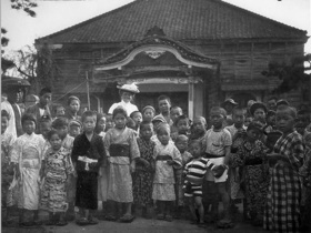 Olive Brown Sarre (1873-1954) was an adventurous and charming widow in her early thirties, the mother of a young son. Born in Binghamton, New York, she attended private schools in Philadelphia and the Art Student’s League in New York City. Although it is not documented, she may have visited Japan prior to meeting Seaman. Later newspaper articles would refer to her as having spent “years” there. Other sources claim she that she was fluent in the language.