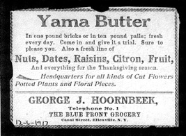 Advertisements for Yama Farms dairy products appeared regularly in local newspapers. One wonders whether the butter sold in this Ellenville grocery store bore the imprint of the Yama-no-uchi ideogram as did the butter served to the Inn’s guests.