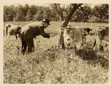 Frank Seaman conversing with members of Yama Farm’s herd of 100 purebred Jersey cows.