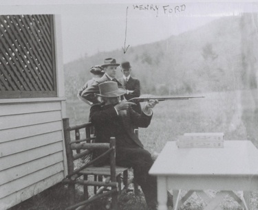 John Burroughs takes aim while Henry Ford and others look on. Photograph Courtesy of the Sojourner Truth Library, Special Collections, SUNY New Paltz.