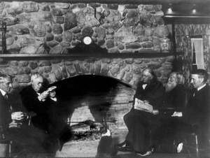 Although many of the guests’ names are recognizable today, others are not. But even the most superficial research is enough to establish that these men and women were among the most influential people of their time. They were bound together by overlapping personal and professional networks—ties perhaps initiated and strengthened during their stays at the Inn. Foremost among these circles was a group known as The Famous Four, which included Burroughs, inventor Thomas Edison, and industrialists Henry Ford and Harvey Firestone. Numerous photographs of the Famous Four survive, chronicling their visits to Yama Farms as well as the camping and road trips they shared well into old age. Other guests associated with the worlds of industry and finance were George Eastman, H.H. Westinghouse, Vincent Astor, Alfred Irenee duPont, Coleman T. duPont, Sidney M. Colgate, W.W. Fuller, Ralph Wurlitzer, and John D. Rockefeller. Recalling Yama Farms years later, Mopsy Shoumatoff remarked: “If you were introduced to a Mr. Waterman, it would be the fountain pen; Mr. Colgate, the soap; Mr. Eastman, the Kodak.” Mingling with the industrialists were educators, men and women in the arts, newspapermen, publishers, scientists, explorers, and politicians.
