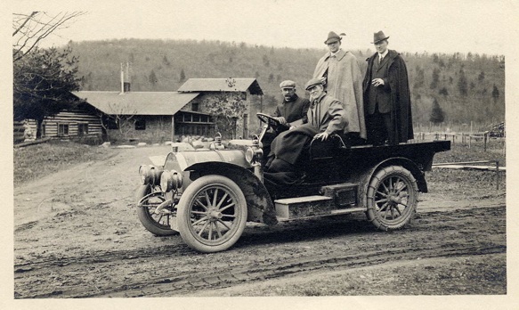 Many guests were associated with the arts, journalism, and publishing. Visitors included the sculptor Frederick Remington; conductor Leopold Stokowski; the founder of the American Arts and Crafts movement, Gustav Stickley; and Charles Lang Freer, art collector and founder of the Freer Gallery in Washington, D.C.. In the photograph above, novelist/playwright/journalist, Alexander Black, is seated in the passenger seat next to the driver. He served for a number of years as the editor for Frank Seaman’s advertising agency. The flamboyant attire of his two standing companions suggests that they too may be involved in the arts or in journalism.