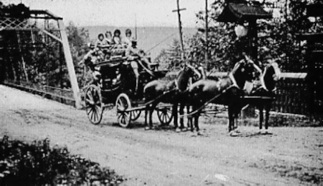 Guests arriving at the lower gateway by antique stage coach.