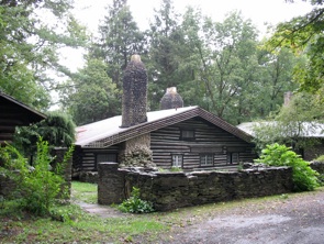 View of the Hut. The naturalistic piling up of stone at the chimney’s base is characteristic of the Arts and Crafts movement, with its emphasis upon organic forms.